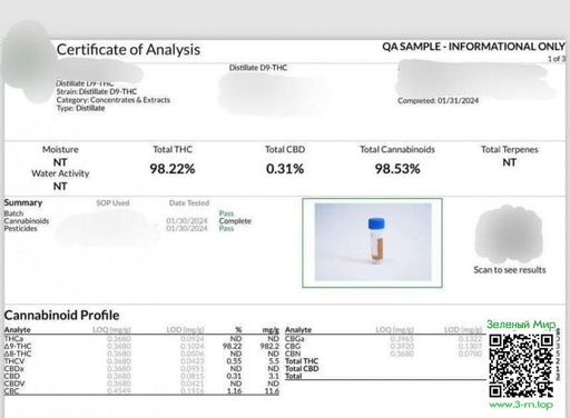Свежее и невероятно мощное масло "Delta9" с убийственным содержанием THC: 98%